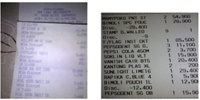 | Contoh struk dari Supermarket/Hypermarket /Minimarket/Ritel Lokal/Klik Indomaret/Alfagift/Midi Kriing |